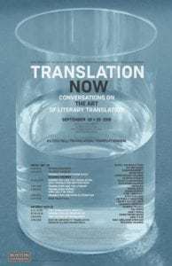 There’s still time to sign up to attend the big translation symposium at Boston University – “Translation Now: Conversations on the Art of Literary Translation” – that’ll be taking place on Sept. 28 – 29. Organized to mark the 40th anniversary of the Boston University Literary Translation Seminar, the event will feature a keynote by Rosanna Warren, who ran the seminar for many years, as well as two days of stellar-sounding panels. You’ll find the complete program and participant bio notes on the BU Translation Seminar website. Register ASAP if you’re able to attend (n.B. it’s free of charge!) so you can get access to the readings that will be used during the symposium.