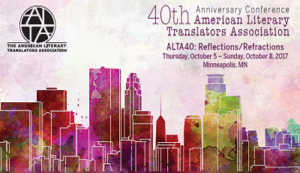 Just back from a whirlwind 40th Anniversary ALTA Conference in Minneapolis, where (among other things), the winners of ALTA’s various prizes were announced, including the National Translation Awards (NTA) in poetry and prose as well as the Italian Prose in Translation Award (IPTA), the Lucien Stryk Prize for a work translated from an Asian language, and the Cliff Becker Prize for an unpublished work of poetry (winner to be published in a bilingual edition from White Pine Press).