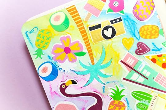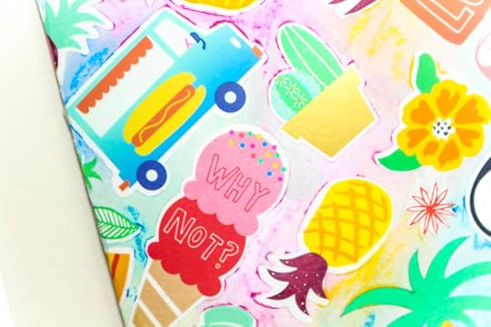 Then comes the fun part! Grab your clear sticker sheets and create a fun colorful pattern by filling the page with all the different shapes and icons you love. Start with the bigger stickers, spread them across the page, and then start filling the gaps with the smaller ones.