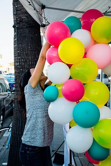 Set it up at your party.Once you’ve moved your backdrop to the location where you want it to be set up, tie the balloon clusters to the stand.