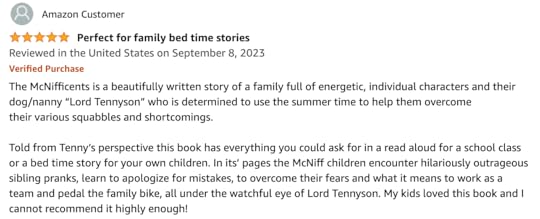 In a large pink farmhouse at 238 Marigold Lane lives a most unusual nanny: Lord Tennyson, a short middle-aged gentleman with white whiskers and a royal pedigree. -The McNifficents by Amy Makechnie