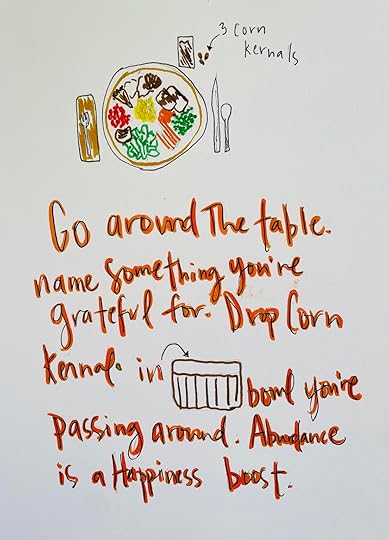 Acceptance for what is. Remember that time there was a blizzard on Thanksgiving morning and no power and that one time the toilet overflowed in the middle of the meal, and that wacky moment when … nvrmind. Hey, it’s either a good time or a good story! I’m a little sad that only our youngest of four children is home for Thanksgiving this year, BUT I’m still looking forward to a wonderful meal with who is here. AND, three of our four will be home for Christmas. Yes, we can accept what is, find joy in the present, and also be excited about the future.