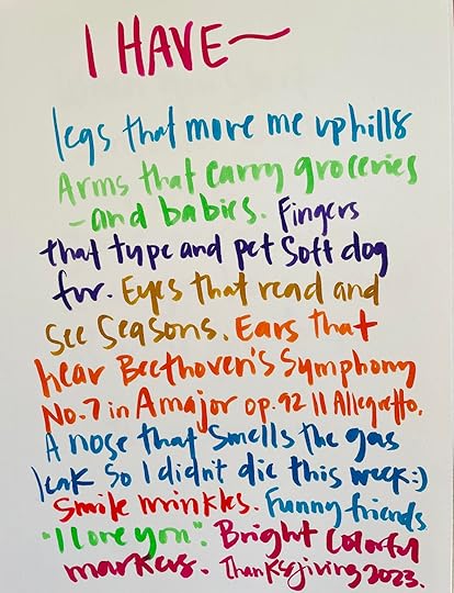 Writing from a place of “I HAVE” is acknowledging what we have instead of what we don’t. And that, is a place of gratitude = happier living.