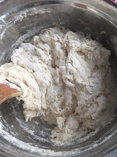 Three ingredients: flour, yeast, salt, and water. Stir.
