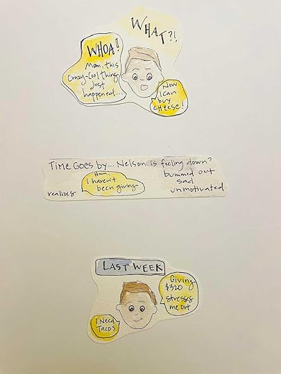 But after I proudly showed my creation to two readers, they couldn’t quite follow the story b/c my pictures were too close together. The order was obvious to me, but not the reader. ergh.