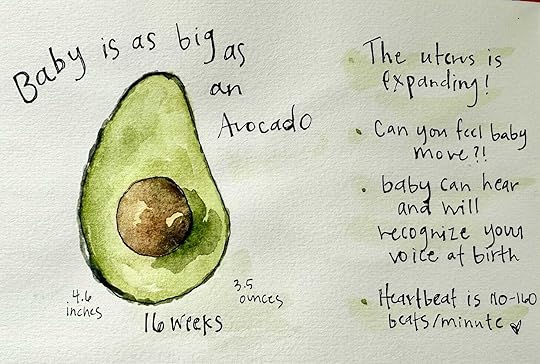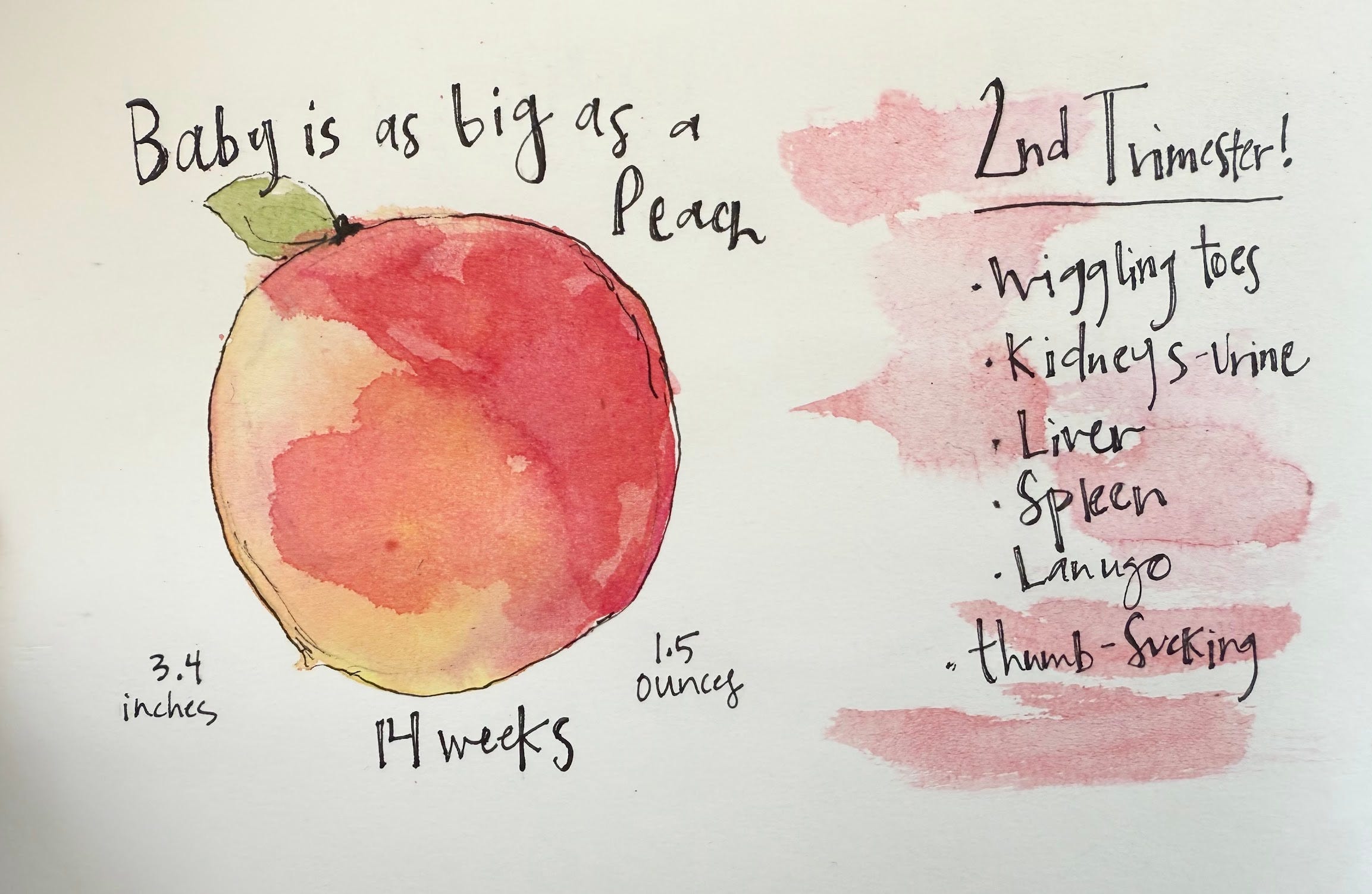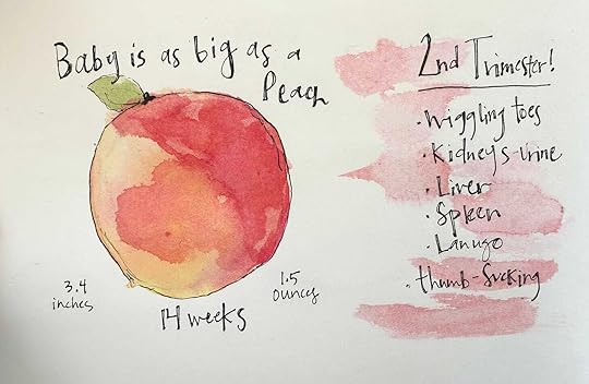watercolor and black inkPainting these baby bumps “fruits” week by week is helping me pay attention to the miracle of life.