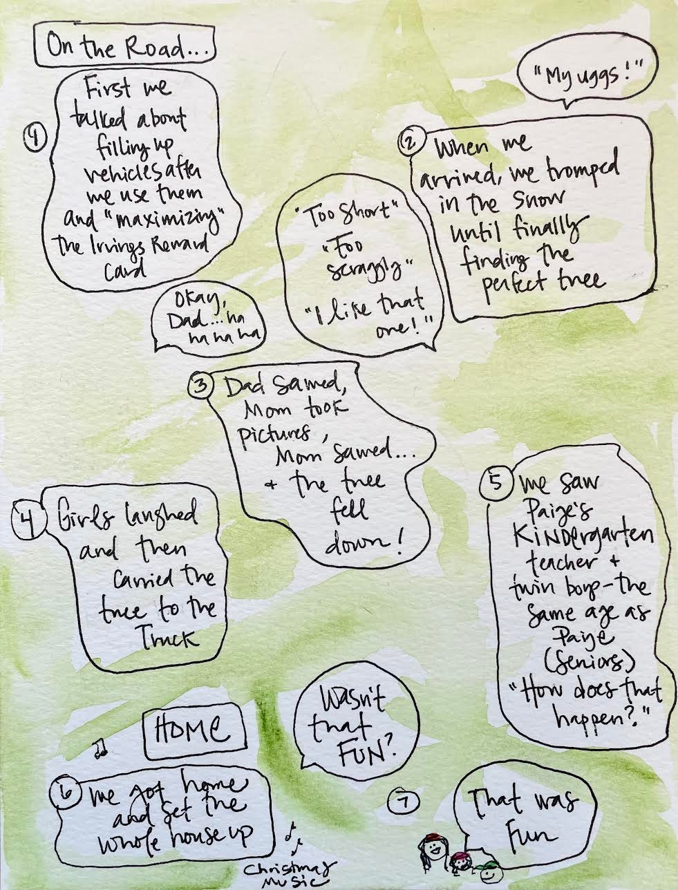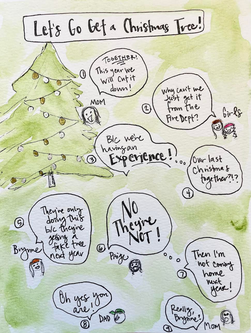 I hope I always remember the day we cut down the tree together, carried it home, and laughed a lot (while also reminding the teens that when they drive a car, they should fill it up…okay mom and dad…) and if there’s ever a day that I don’t remember - well, the kids might. And at least I wrote about it and drew some pictures…