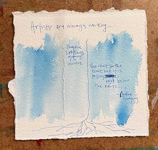 “Let’s face it—artists are always working, though they may not seem as if they are. They are like plants growing in winter. You can’t see the fruit, but it is taking root below the earth…The life and the work are equally important. You cannot separate one from the other. The work changes the life, and the life changes the work.”