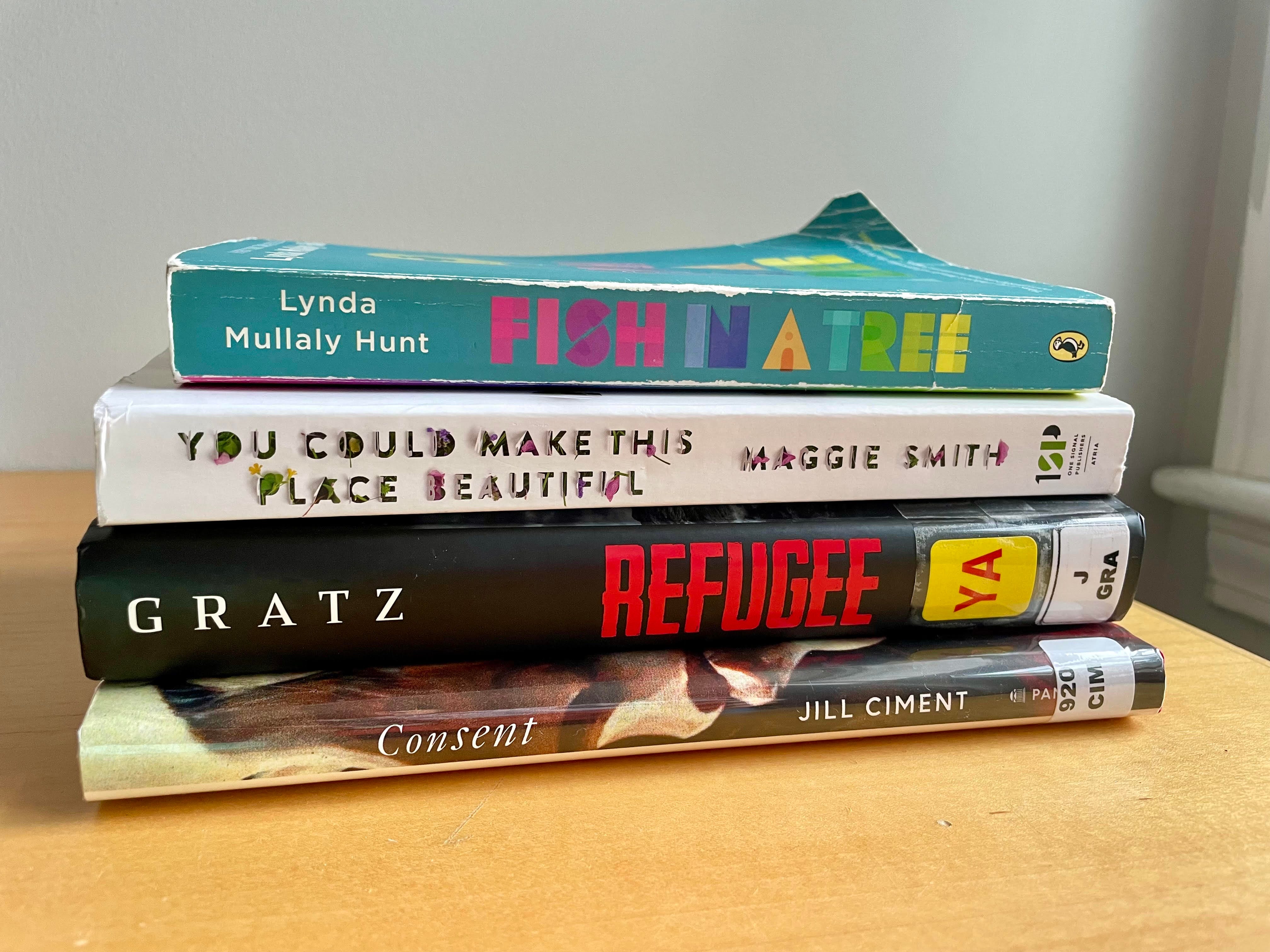 FISH IN A TREE by Lynda Mullaly Hunt. Sixth-grader, Ally, is incredibly smart, but has an embarrassing secret…she can’t read. To get around this, she creates clever, yet disruptive distractions. “She’s afraid to ask for help; after all, how can you cure dumb?” (break my heart). The other hero of the story? A TEACHER who knows how to help Ally with her undiagnosed dyslexia.