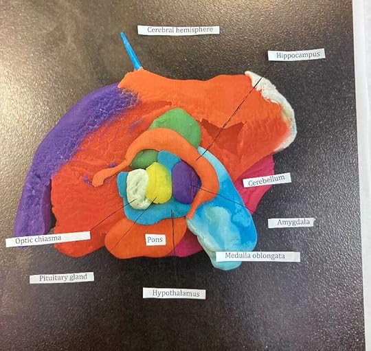 my trusty writing companionIf you want to educate yourself, students (or kids) about the brain, I suggest starting with play-doh. “Learning while doing” is so effective. Look at anatomy textbooks or google “brain” and form the brain structures. Even pre-k kids can do this! Use all of the colors, rolling up little balls of orange or red or blue to form the pituitary gland, for instance. Then you can move on to researching the physiology (what each part does).