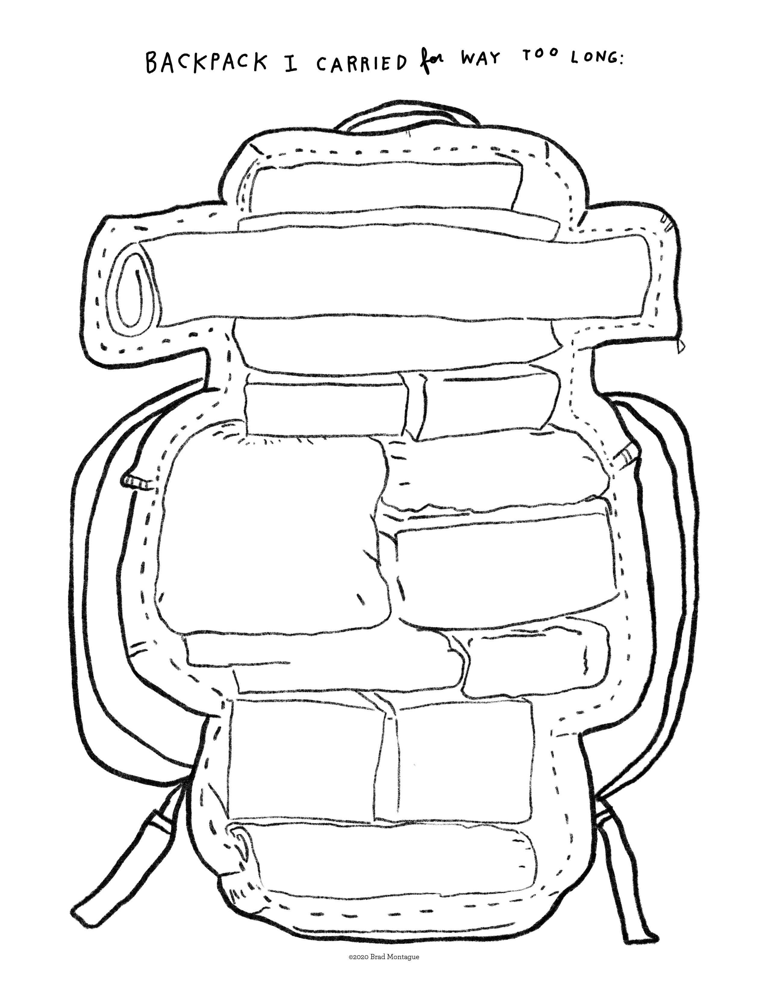 The backpack we carry for too long. Print (drawn by author ), fill it up and then LET THOSE THINGS GO. Thank you, Brad.