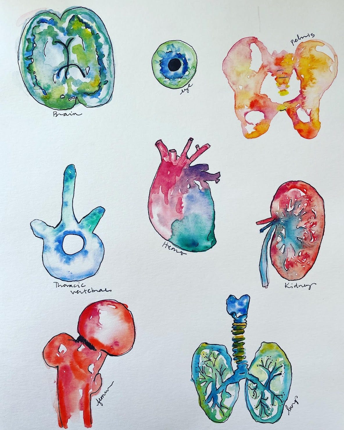 one student’s particularly neat workDuring Covid, when teaching online (with much more downtime), I painted anatomy and turned them into stickers: