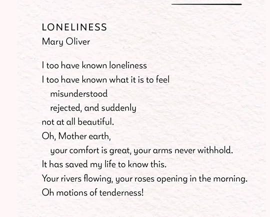 Or, how about the poem “Loneliness” by Mary Oliver? Her introductory cry comes halfway through the poem to Mother earth. The problem is loneliness, but she is able to recall and remember comfort and quickly get to a place of praise.