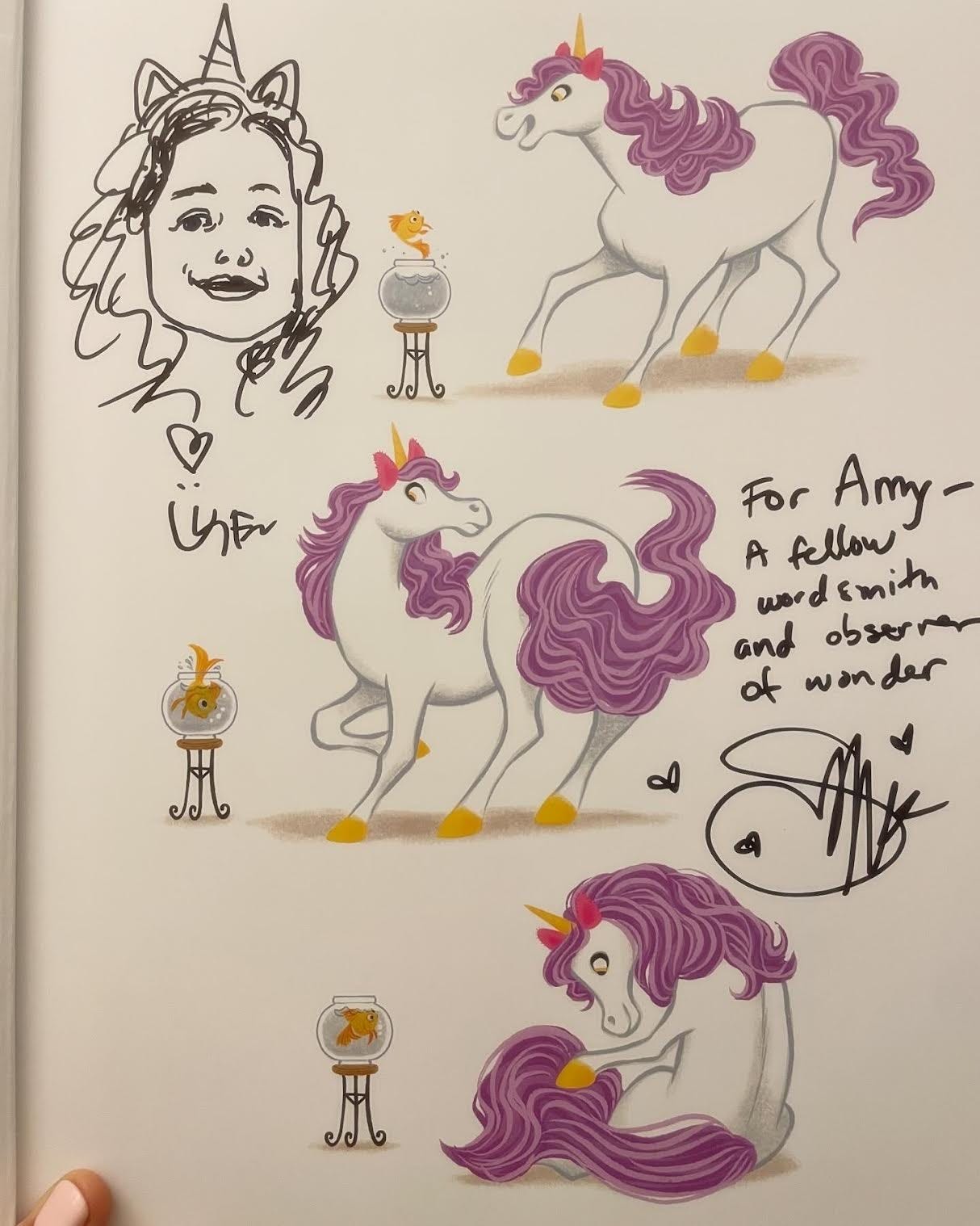 For each book signed, Shannon wrote a note and Leuyen drew a picture of YOU (with kitty-corns) right there and then - amazing. I will cherish this forever.
