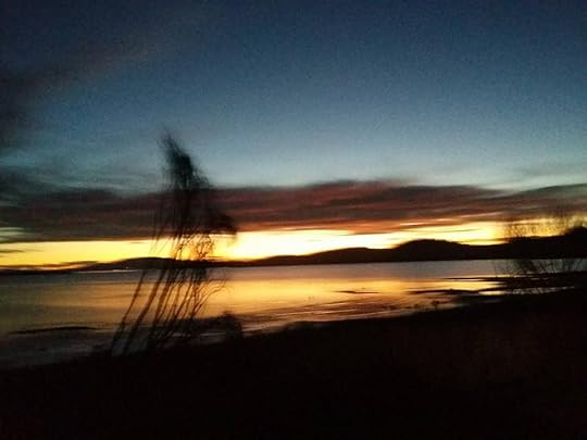 A view of Lake Tekapo from a spot beside the Church of the Good Shepherd