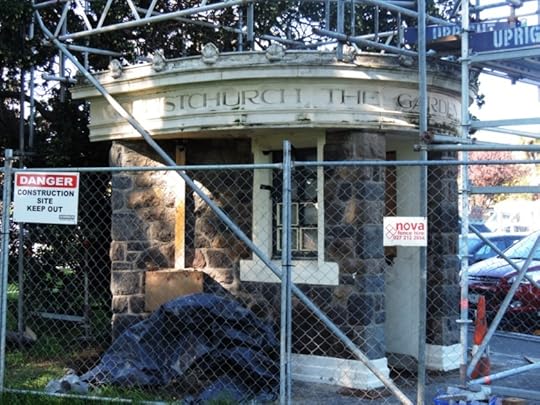 “Christchurch the Garden City on the Avon” reads the little structure below, still in the course of being patched up.