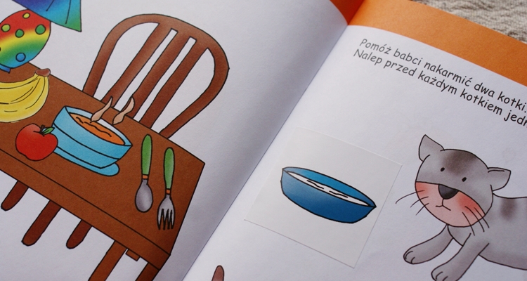 Zadania, przed jakimi staje dziecko, to przede wszystkim: odpowiedzenie na proste pytanie, wskazanie czegoś paluszkiem i przyklejenie właściwej naklejki. Dwulatek ćwiczy dzięki temu koncentrację, pamięć i orientację przestrzenną, a oprócz tego poszerza swoje słownictwo oraz wiedzę o świecie.