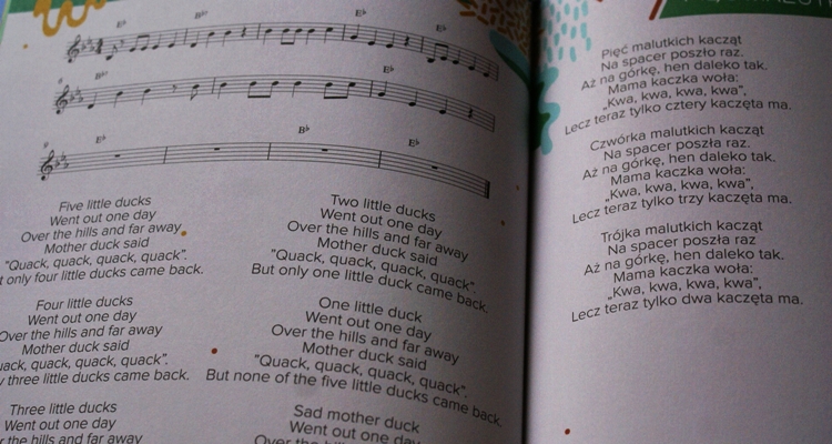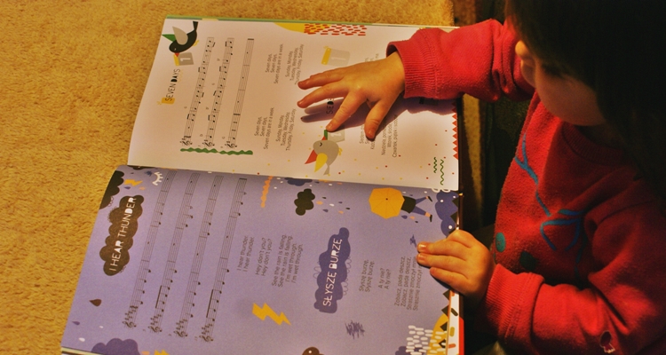 Ujmujące są ilustracje zdobiące książkę, ale ciekawym dodatkiem są także zapisy nutowe, które starszym dzieciom pozwolą wygrywać melodie na instrumentach (kiedy ja byłam w podstawówce, uczono nas gry na flecie i cymbałkach). Oprócz tego każdy z tekstów ma tłumaczenie na język polski, co ułatwi zrozumienie śpiewanego tekstu.