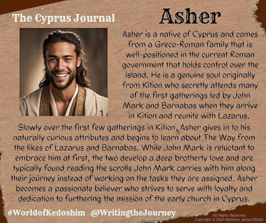 My Character, Nathaniel, was once a slave in Colossae. He became a believer along with his brother Zadok when Paul first visited Galatia on his first missionary Journey. Nathaniel and Zadok were sent to Galation on an errand for their slave owner, Jabez, who also became a believer after he saw the way faith changed Nathaniel, his brother, and even their sister Elena. After Jabez was converted, he freed and pardoned Nathaniel and his siblings. The Brothers became missionaries in Asia Minor, Macedonia, and Greece while Paul was traveling with Luke and others on the second and third missionary journeys. They often interacted with other characters from the biblical narrative.
