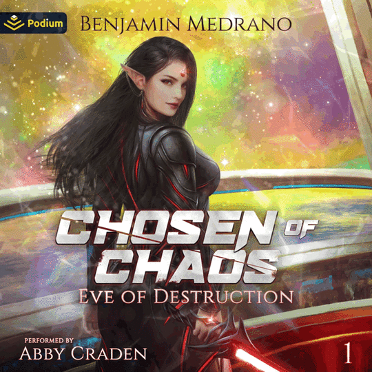 The audiobook of Chosen of Chaos comes out today! I’m really excited to see what you think of Podium’s work, as well as Abby Craden’s depiction of Evelyn! Above is one of the promotional images that they came up with for the cover, which I thought was awesome.