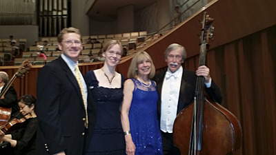 With my doublebassist husband, Joe Hearne, our son Sean and his wife Catherine in the National Centre for the Performing Arts in Bejing, just before concert time