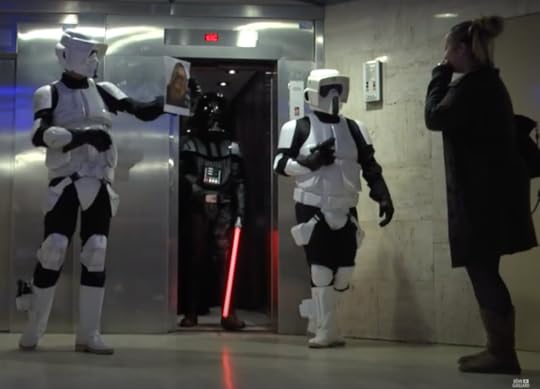 Gaillard loves to do things like commandeer an elevator and create ridiculous scenes inside it—a disco or a living room or a climber scaling Mount Everest. Or he’ll recreate a scene from Star Wars. The unsuspecting person waiting for the elevator is definitely surprised when the doors open!