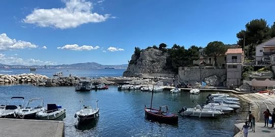 The town is built around a small calanque, a kind of tiny fjord that opens onto the Mediterranean Sea. There are boats bobbing in the water and beautiful views of Marseille and the rugged coastline.