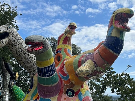 Her masterpiece is the Tarot Garden in southern Tuscany, where she created huge, colorful sculptures of the 22 major arcana of the tarot. It was inspired by Gaudi’s fantastical Parc Guell in Barcelona, and having seen both I have to say that Saint-Phalle has surpassed the master.