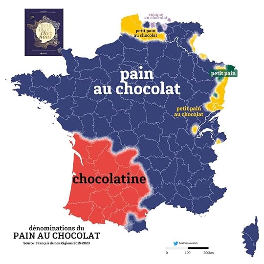 I was surprised to learn that not all French people use the terms pain au chocolat, croûton, and escargot! There are regional variations in France, as in a lot of countries, and a French professor has written a fun book about them. Now I know that if I’m in Toulouse, I’d better order a chocolatine if I want that breakfast treat.