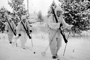 The Red Army was ill-equipped for a winter war both in regard to clothing and vehicles which couldn’t cope with the cold. The Soviet troops were obliged to fight on a small front since large parts of the border were impassible. The Finns attacked the Russian convoys which were stuck on the roads by using their knowledge of the terrain to get behind the convoys blocking their retreat. So the Soviets had to dig in and were soon attacked from all sides. A major victory for the Finns was the battle for Suomussalmi in the north when the Russians attempted to cut the country in two by striking across country at Oulu.