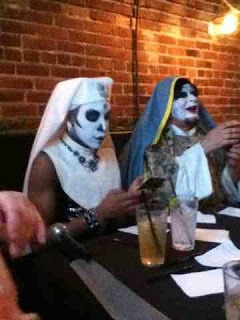 Nice taco supper, too! Needed it before heading off to the Sisters of Perpetual Indulgence Hallowe'en bash at R Place on Capitol Hill. Had loads of fun hooking up back with the crowd, including old friend Maggie Bloodstone.