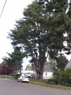 On the way home, in Bremerton, stopped at our old house, to check out if Tree was still there. Yes, s/he was, in a neatly-laid-out brick-edged raised bed. We have actually lived Under The Deodars. Or at least one.
