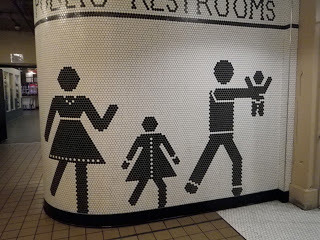 An oddly delicate - or not - way of signaling without language, "This way to the restrooms."