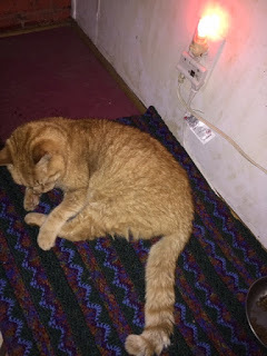 He eats, he drinks, he poops and pees - and he loves to sleep under his red light by the stove.