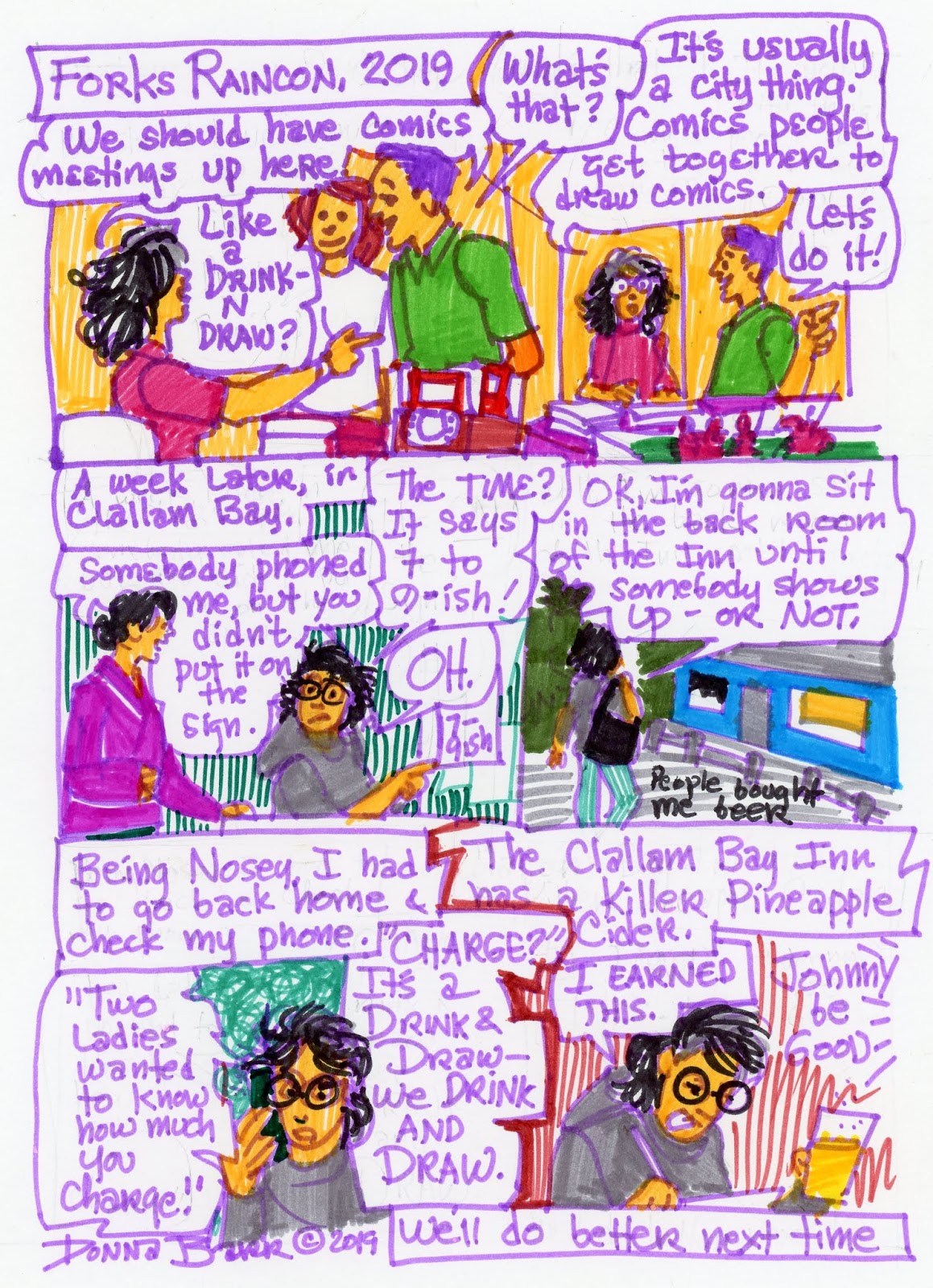 I told him to run right over to this site and look up the Clallam Bay Comicon and start the process of running his own one-person minicon. The secret to this is, after about seven years of what is really quite easily organized, somebody else will want to take it over and expand it, as happened with the CBCC, which has morphed into the Forks RainCon.