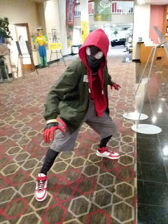 We can't have a comicon this year without the Spiderverse. This cosplayers's outfit matches the carpet!