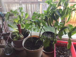 The peppers are doing surprisingly well. I think these are from seeds one of my readers sent me.