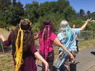Saturday concluded with the costume and cosplay contest. The only particants were the Curtis family, but they put on a lively show. Carla judged them and they got lots of prizes, donated by the Clallam Bay Visitor's Center, the Sunsets West Co-op, and all the tabling creatives.