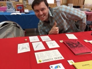 Kalen Knowles offered a crazy new game at his table - a form of exquisite corpse, the body parts chosen by rolling dice. It looks like crazy fun.