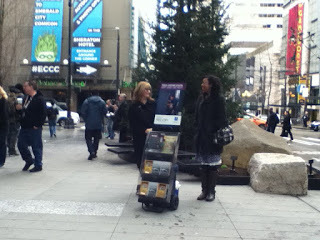 The police were well-behaved. The vehicles were there to guarantee our safety in traffic, and the bicycle police accompanied us on one sidewalk. I told one of them I'd been in the WTO marches, and I liked seeing the police not wearing riot gear.