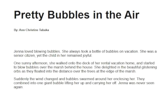 I am thrilled to have my drabble “Pretty Bubbles in the Air” published by The World of Myth Magazine. Thank you, editor Stephanie J. Bardy.