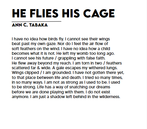 I am super elated to have my poem “He Flies His Cage” published by The Pacific Review of California State University.