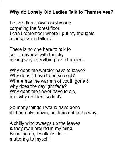 I am thrilled to have my poem “Why Do Lonely Old Ladies Talk to Themselves,” published by Latino USA. Thank you, editor Nolcha Fox.