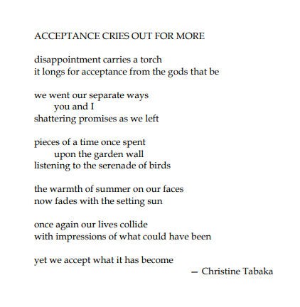Thank you, editor Sand Pilarski for publishing my poem “Acceptance Cries Out for More” (reprint) in The Piker Press!