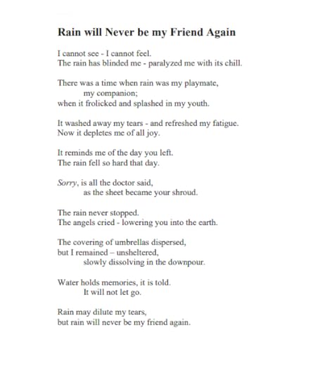 I am very excited to have my poem “Rain Will Never be my Friend Again” published by the POETiCA REViEW (UK). Thank you, editor Mark Murphy.