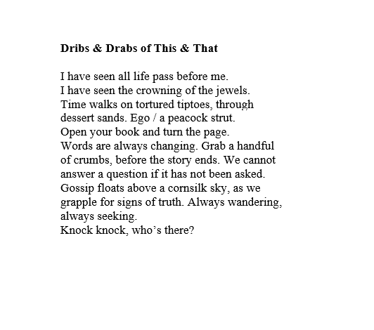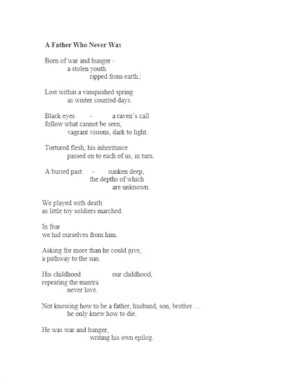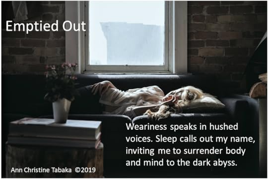 Here is the first stanza of my poem “Emptied Out.” You can read the entire poem in my book “Words Spill Out,” The book is available on Amazon. Thank you for your support.