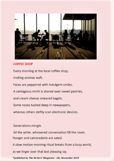 I am thrilled to have my poem “Coffee Shop” (reprint) published by GloMag. Thank you, editor Glory Sasikala!