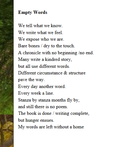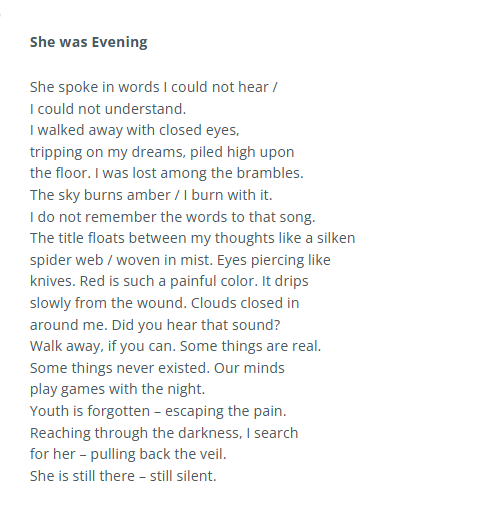 I am thrilled to have 3 poems published by The Lothlorien Poetry Journal. Thank you, editor Strider Marcus Jones.