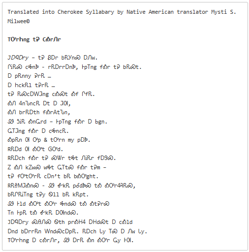 I am thrilled to have 2 poems published by the Sequoyah Cherokee River Journal, and translated into Cherokee Syllabary by editor, Mysti Milwee.