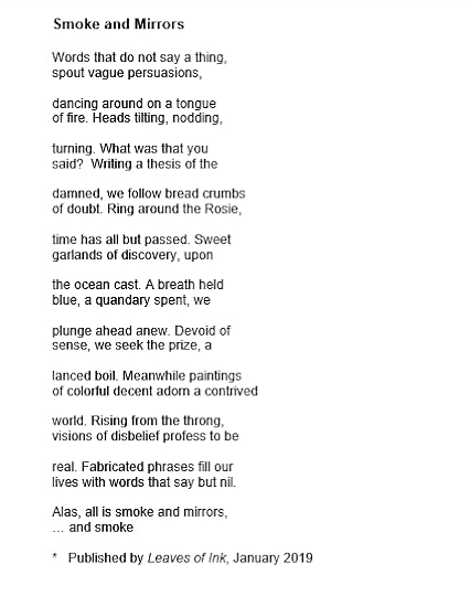 This is a musing from 2014. It is one of the many musings in my first poetry book "Overcast Mind," (published in 2017).